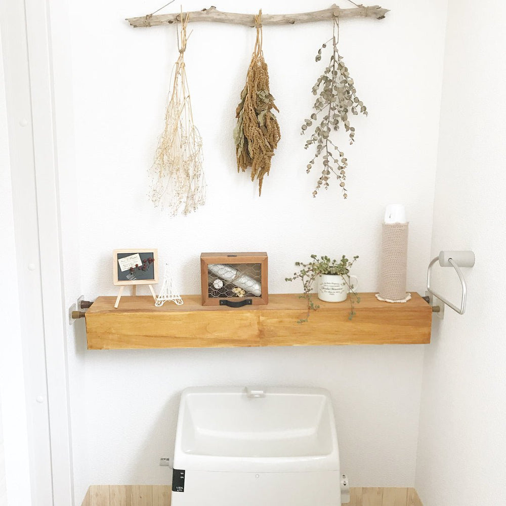 トイレのディスプレイスペースも突っ張り棒で作れちゃう。