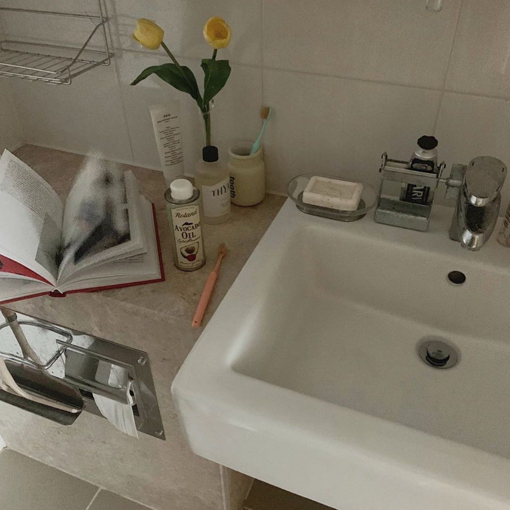 そのためにまず見直したいのが、ボトルのパッケージ。ラベルをはがしたり、詰め替えボトルを使うことで、生活感を抑えたスッキリとした洗面所に◎