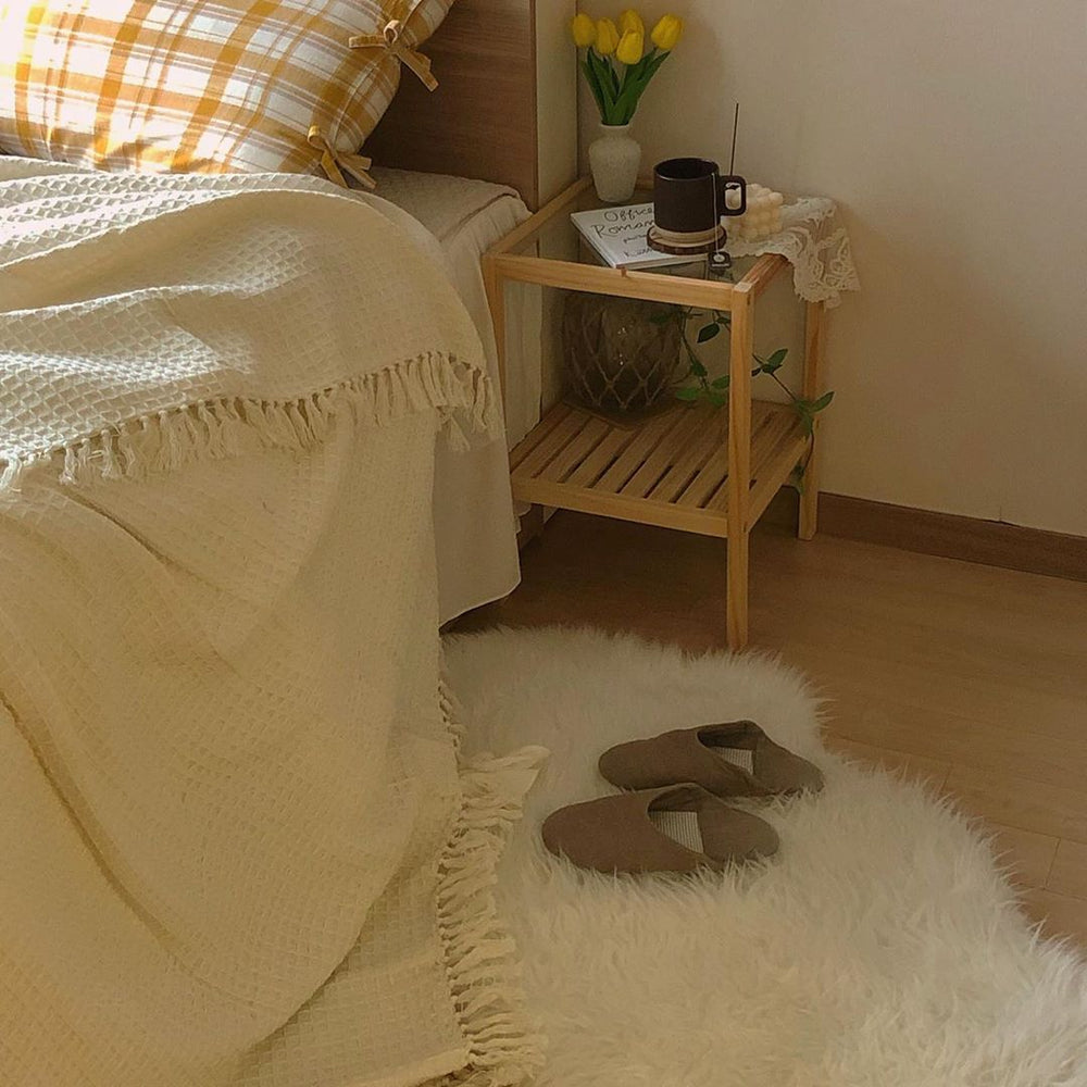 そんな時はベッドサイドにふわふわのファーラグを敷いてみましょう。
