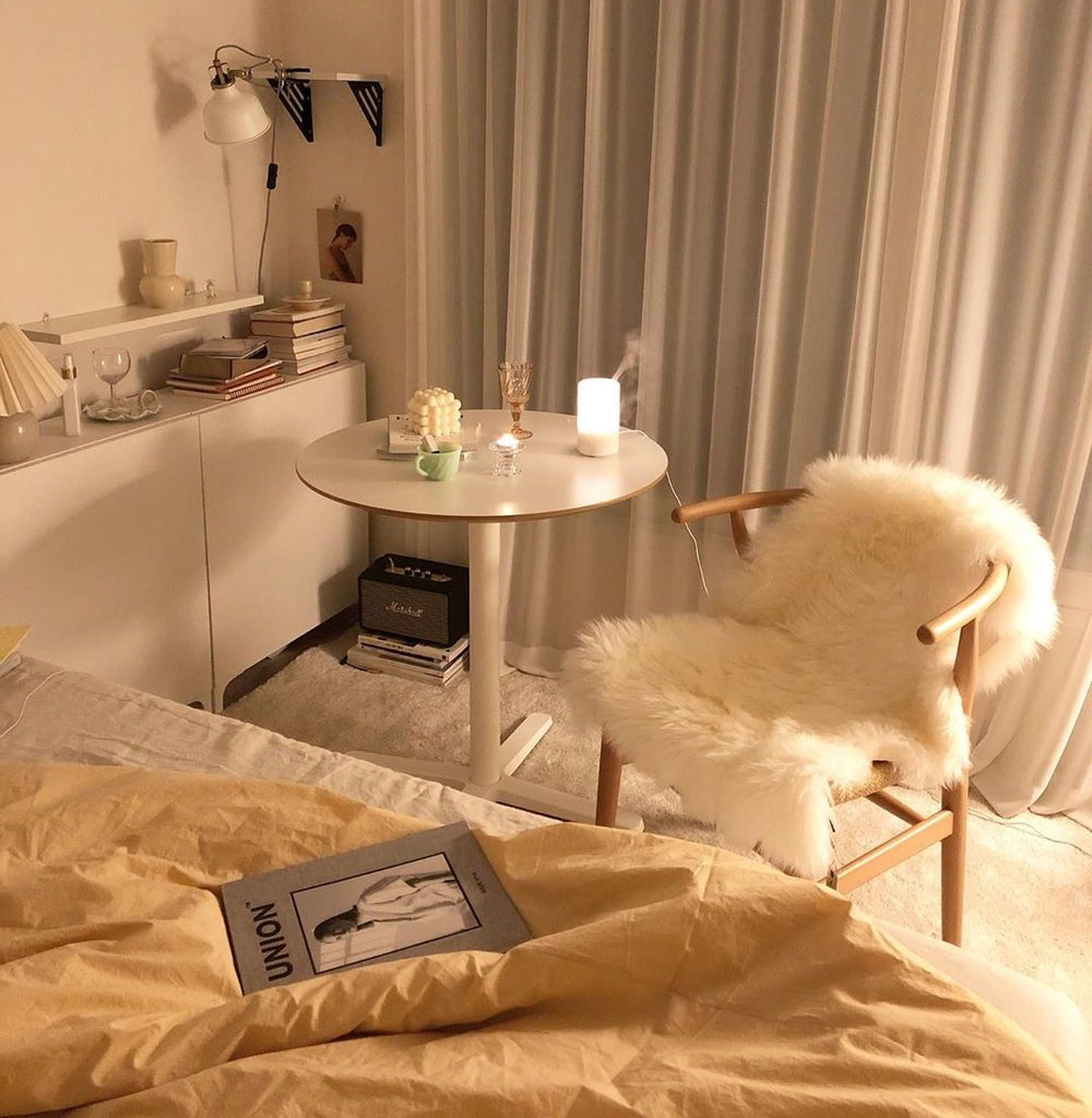 椅子にかけられたファーがふかふかとして温かみがあって、とっても心地好さそう♡