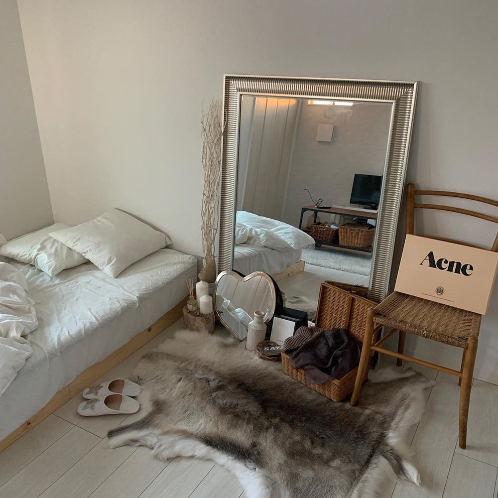床置きの大きい鏡は縁がかわいいものを。