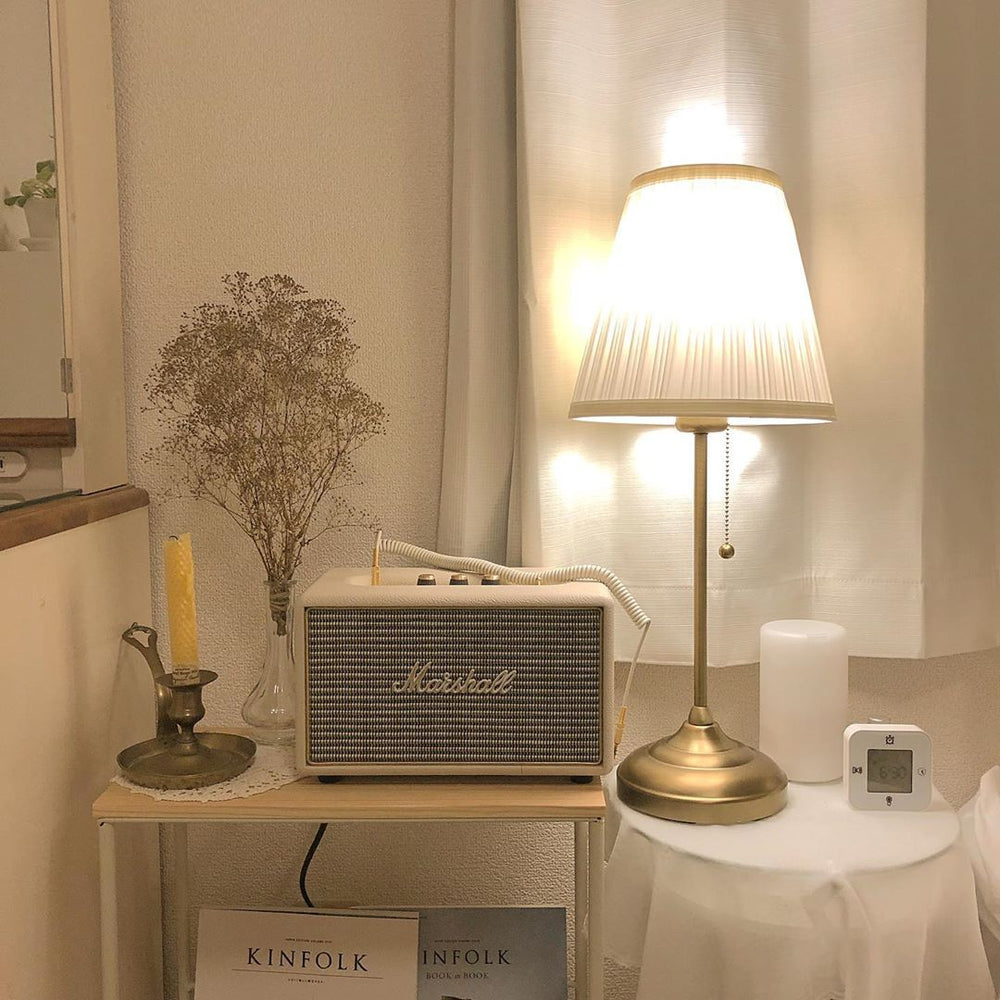 ボディカラーがくすみグレーなので、上品に仕上がりますね。おしゃれなテーブルライトと相性ばっちり。
