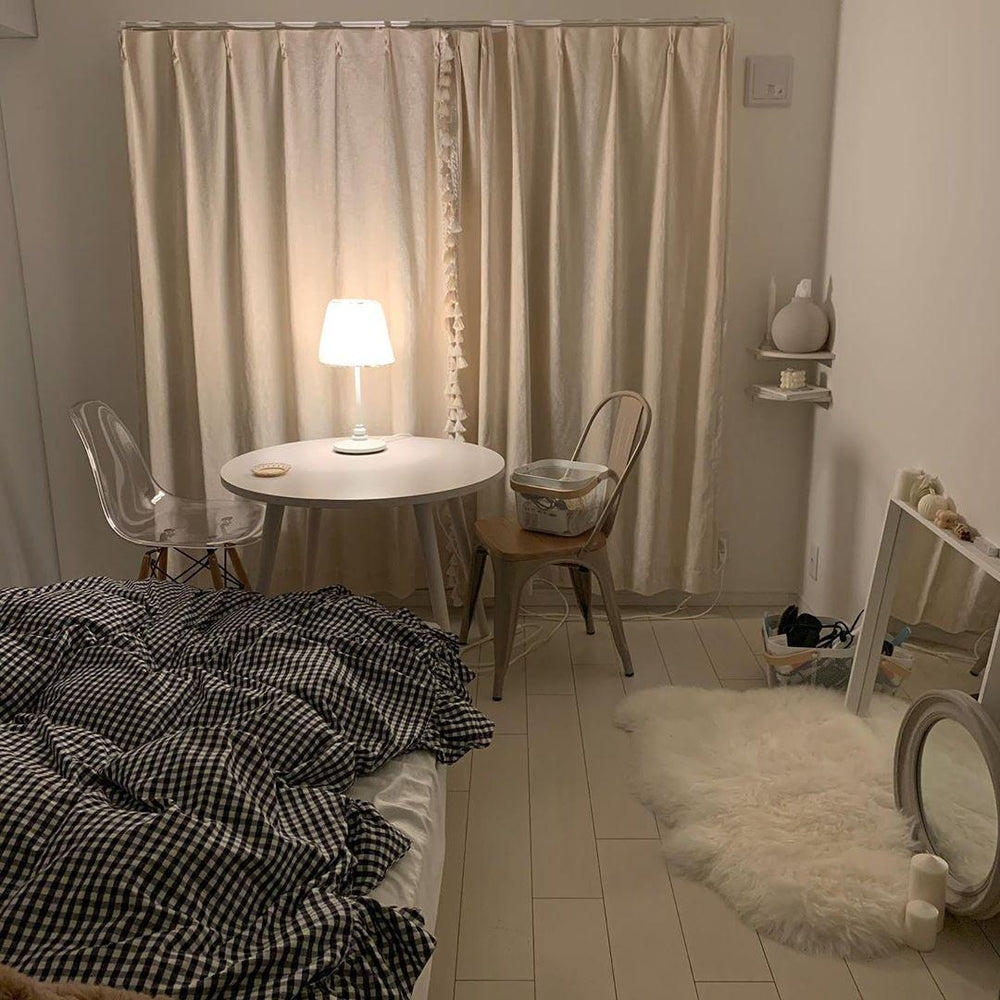 「インテリアなどもベースは白で買い揃えて統一感を出しつつ、たまに色物や柄を入れて遊んだりしています◎」