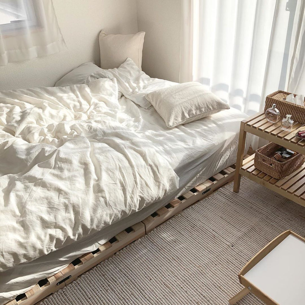 お部屋をローインテリアで統一させるなら、まずは寝具から。