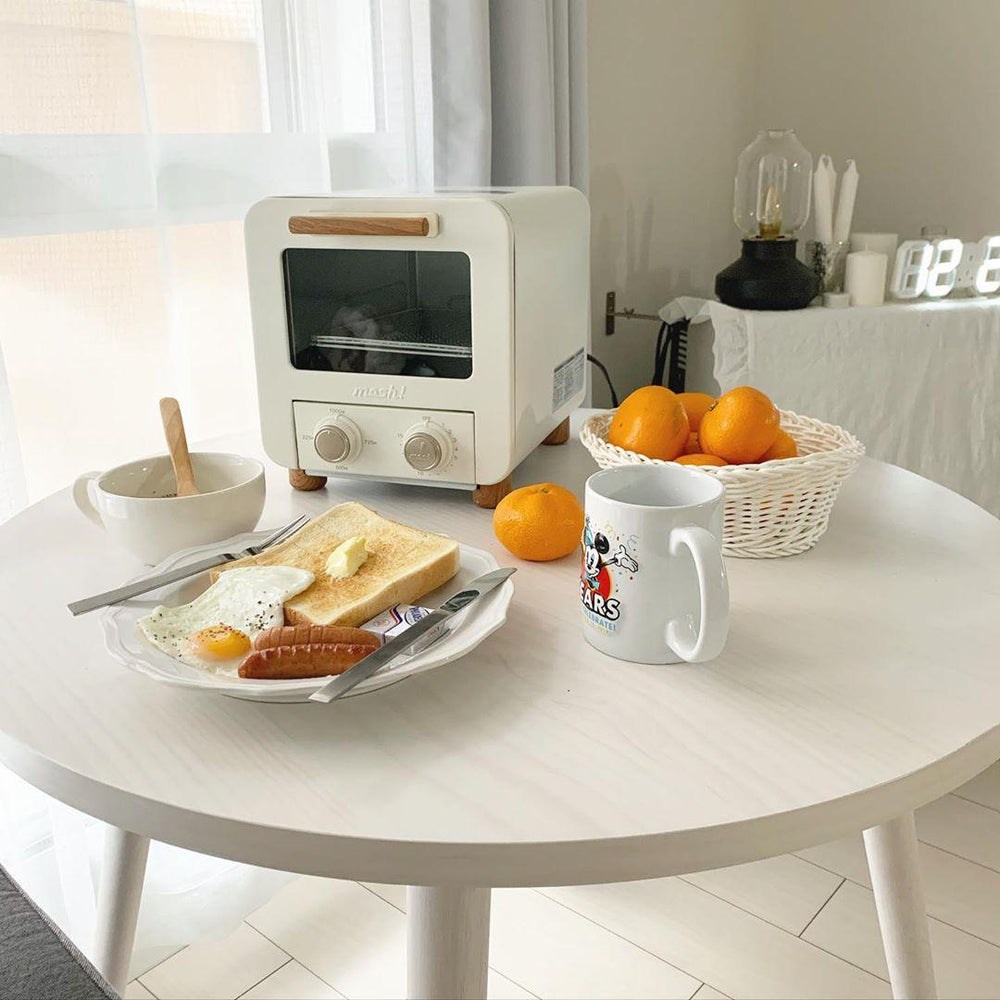 アイボリーの色合いとレトロなデザインがかわいいmosh!のオーブントースター。