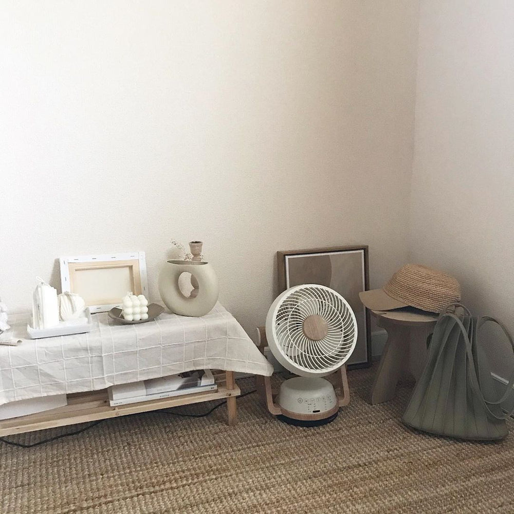 例えば、エアコンの下に置くと、下に溜まった冷たい空気を部屋中に循環させるから、冷房の設定温度が高めでもお部屋が涼しくなりますよ。