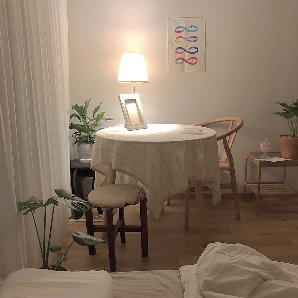 窓の近くにカフェテーブルを置くことで、まるでテラス席に座っている気分を味わえそう◎