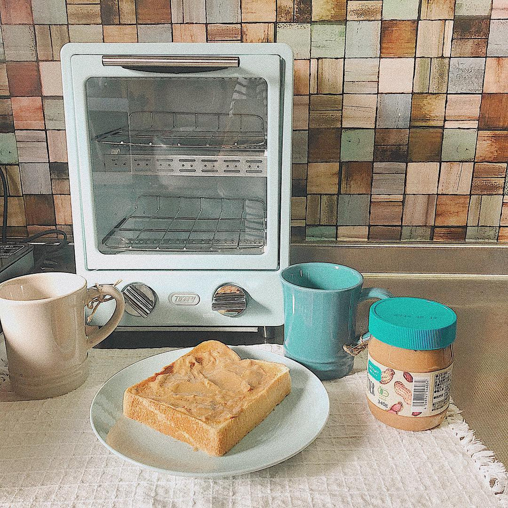 ほわんとしたパステルブルーのトースターはtoffyのもの。