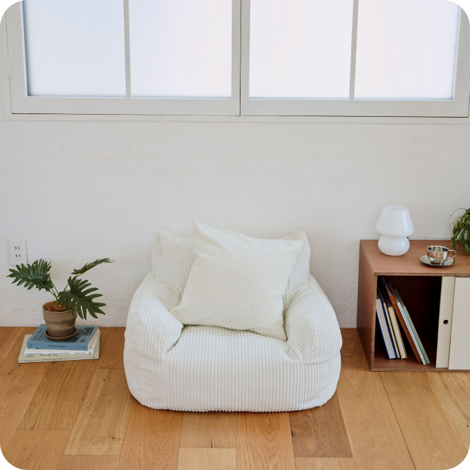 中身は軽いビーズ素材なので、簡単に持ち上げられて床掃除も楽ちん。好きな時に好きな場所に移動させながら使うこともできます。