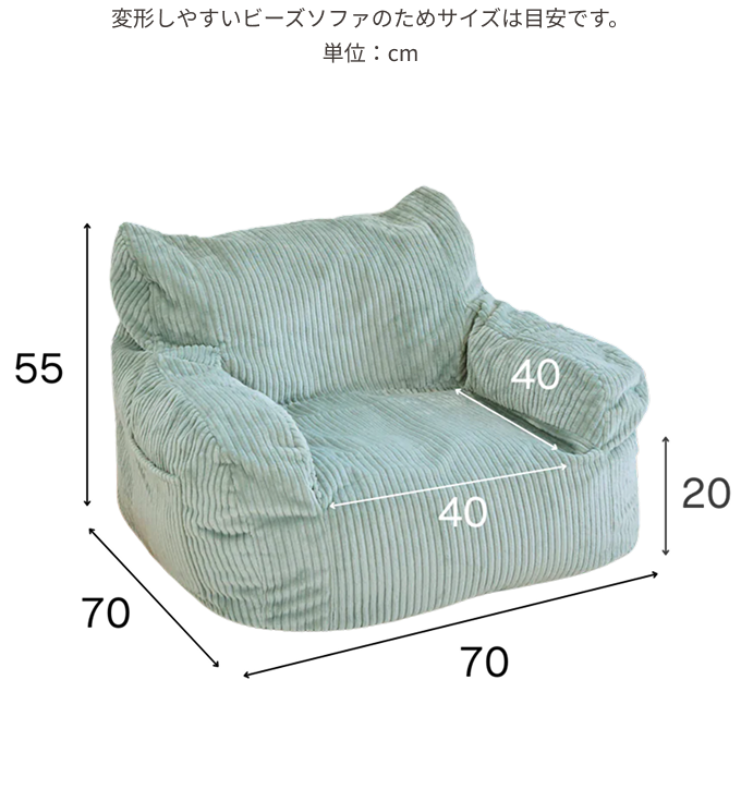・ビーズソファの特性上、使っていくうちに体に馴染んでヘタリが生じてきます。 ・サイズは若干誤差がある場合がありますのでご了承ください。