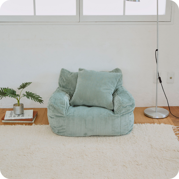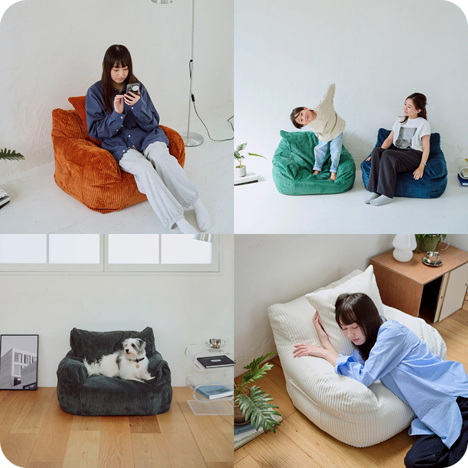 ・ビーズソファの特性上、使っていくうちに体に馴染んでヘタリが生じてきます。