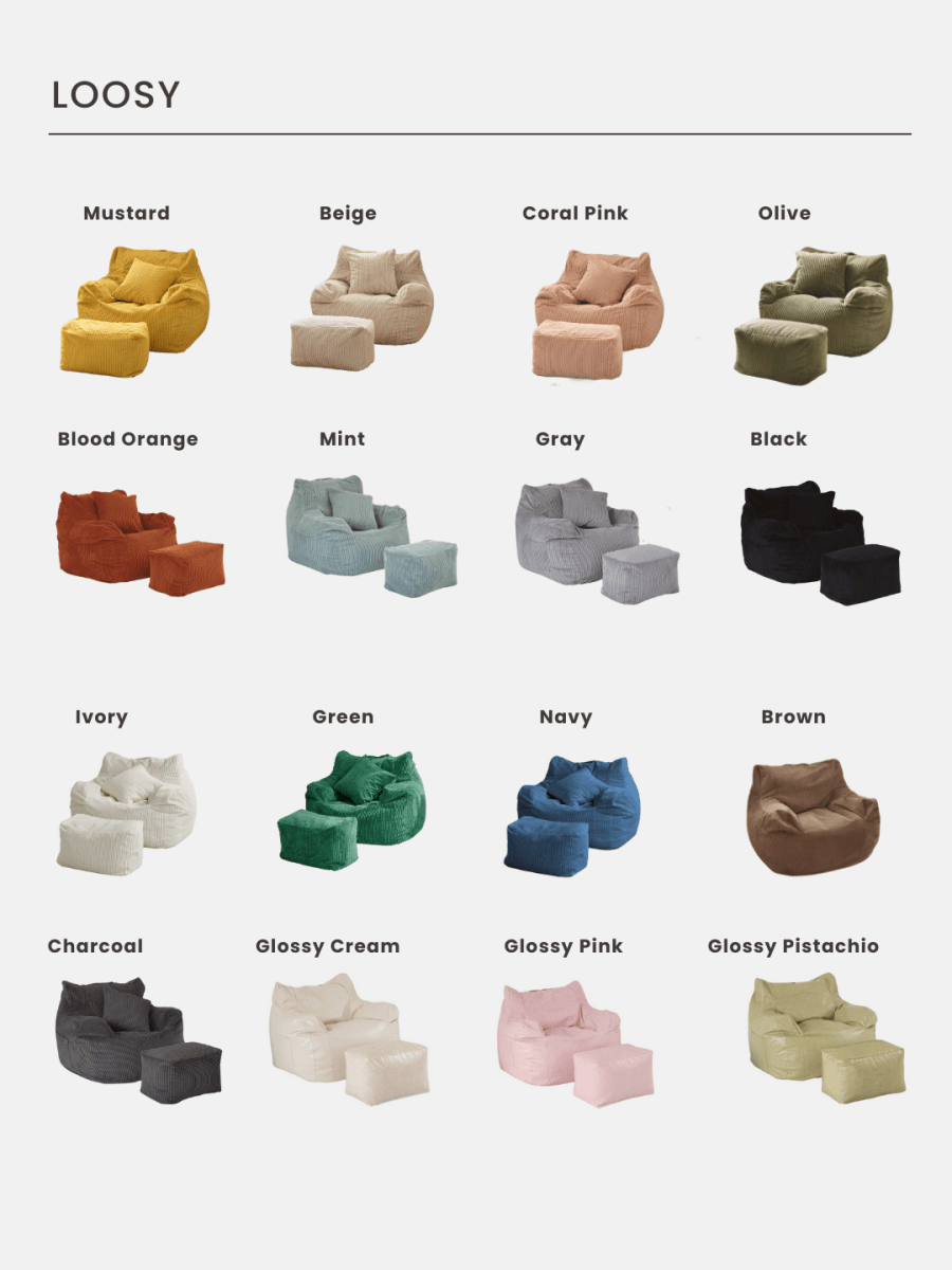 豊富なカラーや素材から選べる「LOOSY ビーズソファ」。