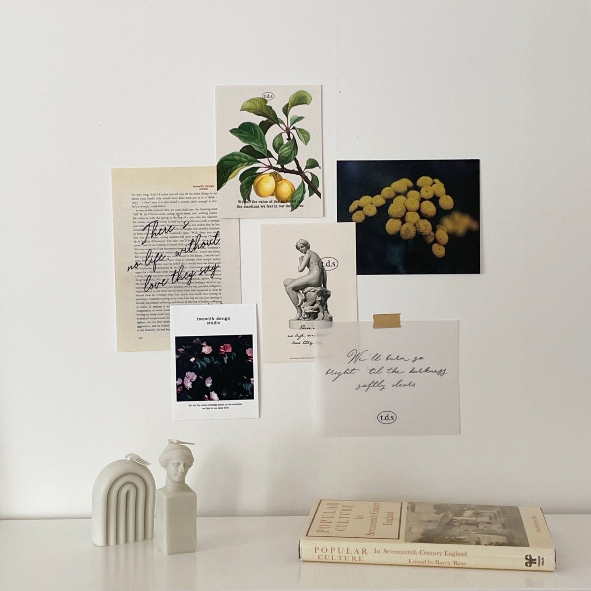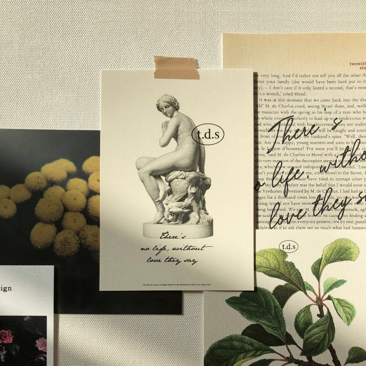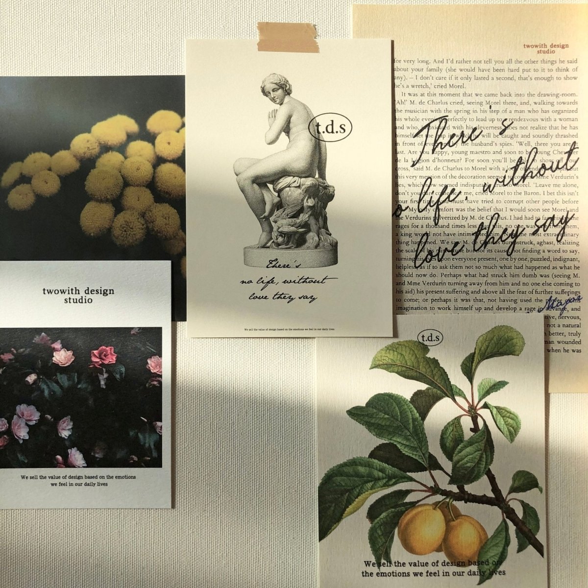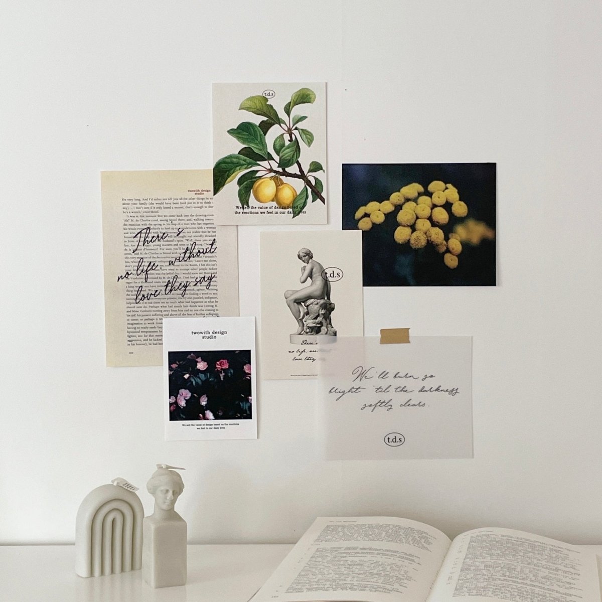 韓国ブランド「t.d.s」の、モダンなお花や果物が特徴的な、雰囲気のあるポストカードセット。