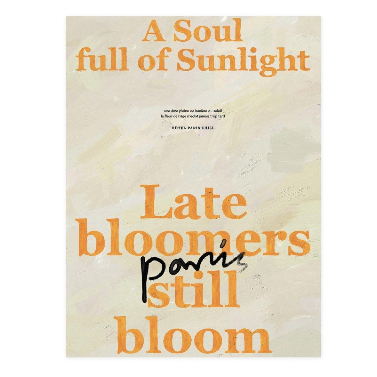 韓国ブランド「HOTEL PARIS CHILL」の太陽のような鮮やかなオレンジの文字が印象的なポストカード。カラーと“A Soul Full of Sunlight”というワードがリンクし、見ているだけなんだか元気が出てくる1枚です。