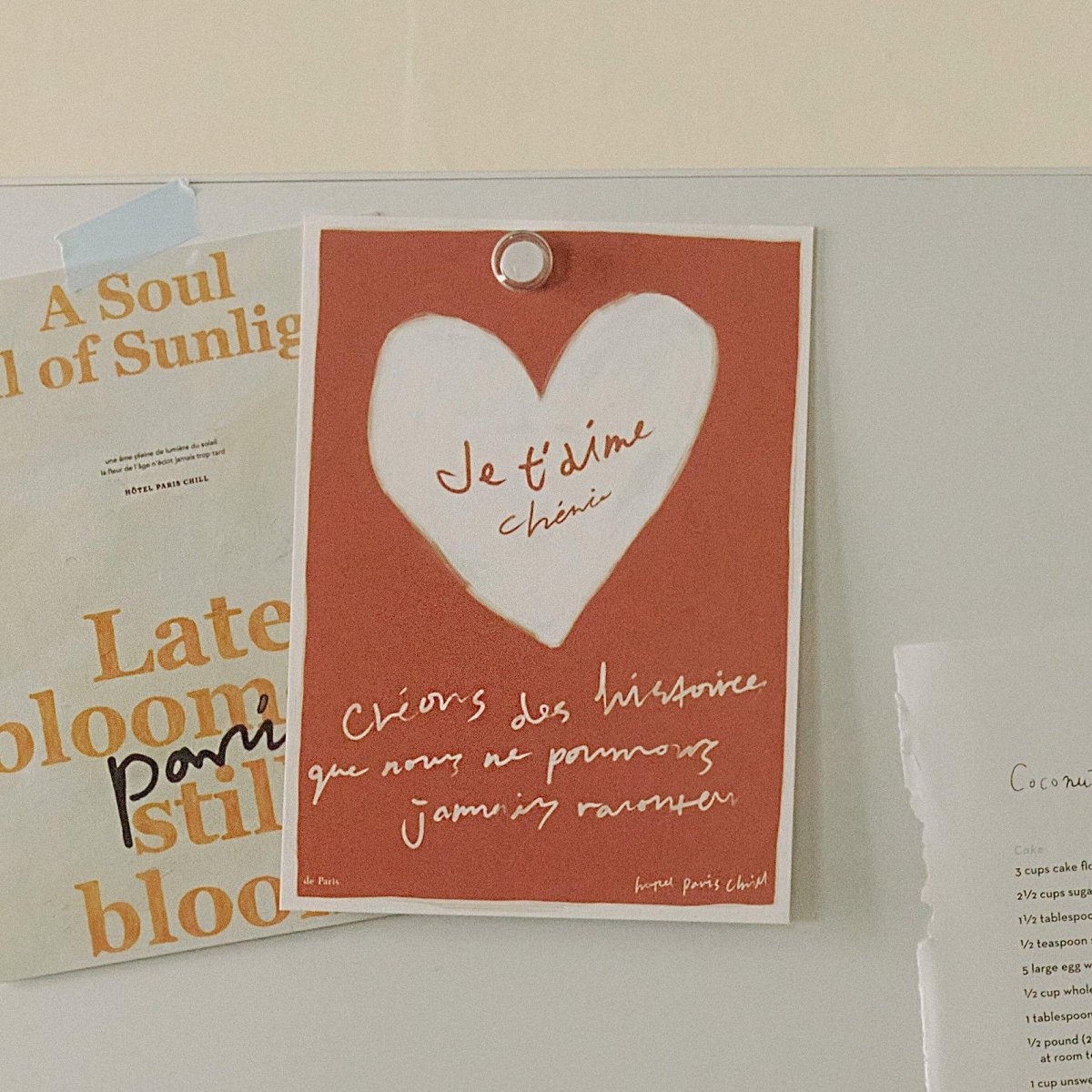 韓国ブランド『HOTEL PARIS CHILL』のポストカード、「Red Chèrie」。赤と白のコントラストと、大きなハートが印象的なかわいらしいポストカードです。