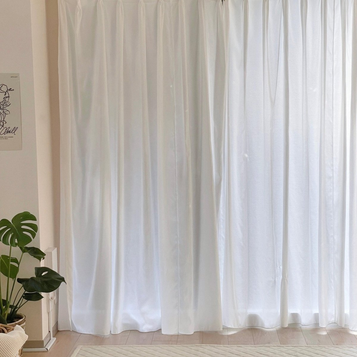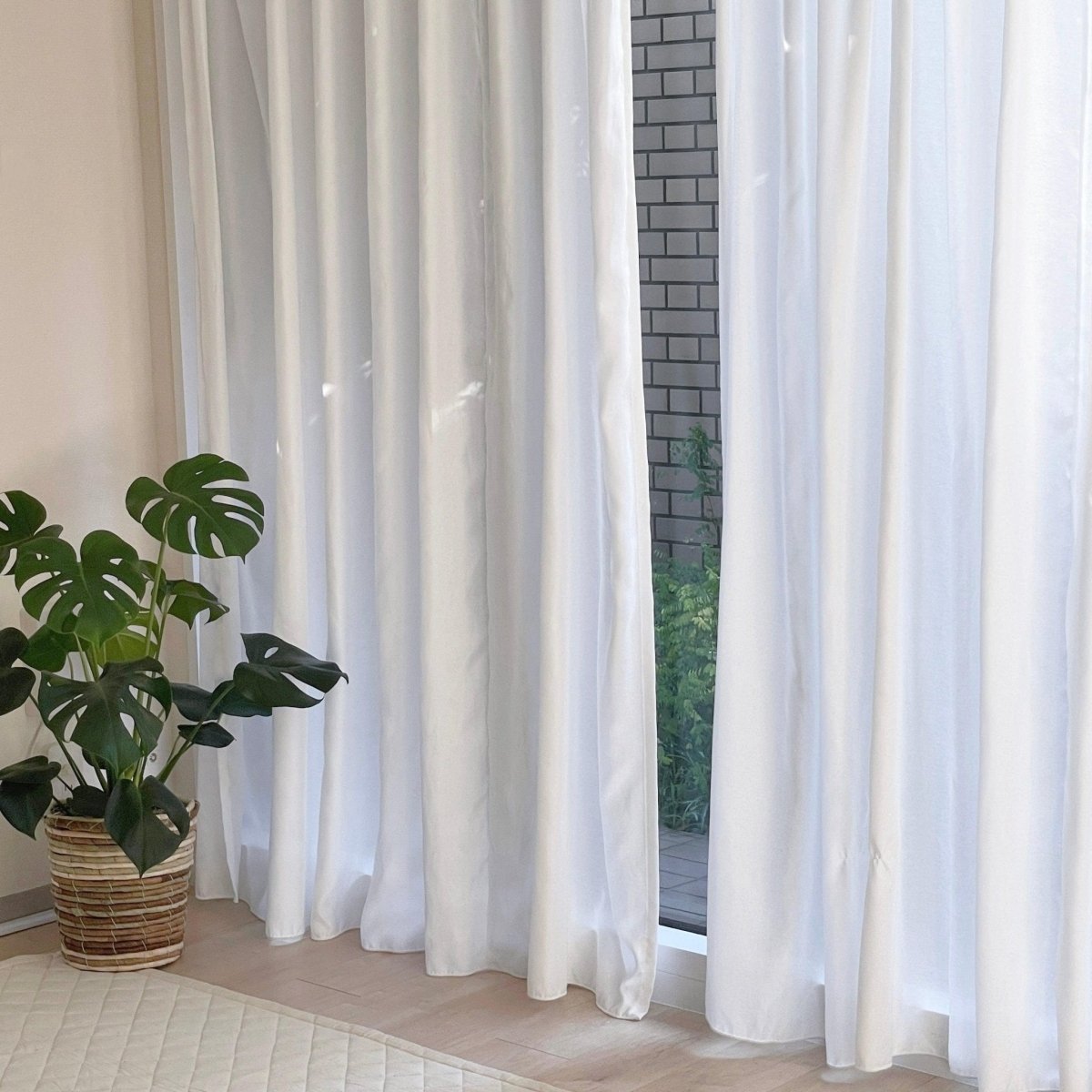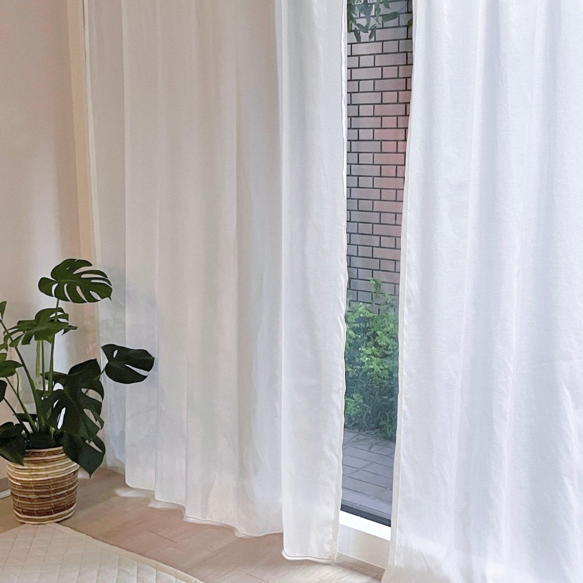 お部屋を明るく見せながら、プライバシーを守ってくれる遮蔽レースカーテン。 光沢のない質感とすっきりとした裾の仕様がおしゃれ。 洗濯機で洗えるのも嬉しいポイントです。