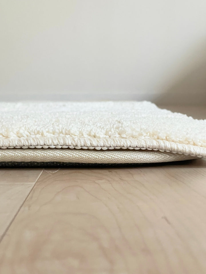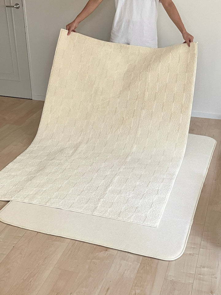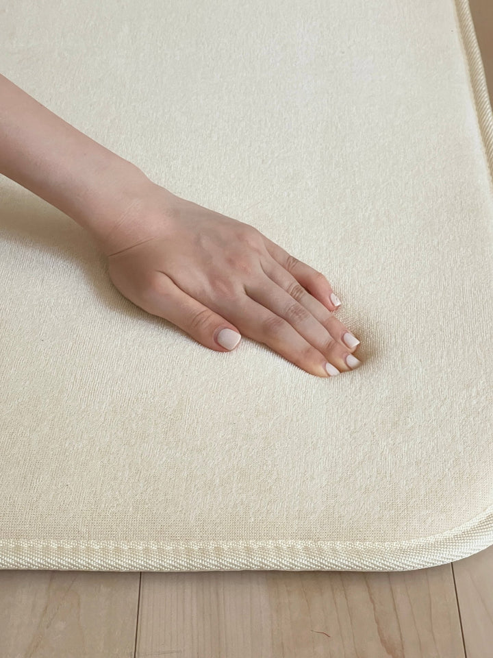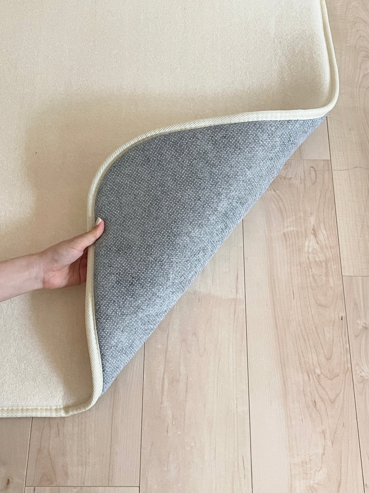 中にたっぷりウレタンフォームを入れることで、「ふわふわ、もちっ」とした感触を実現。薄手のラグやマルチカバーをふっくら厚手のラグに変えてくれます。