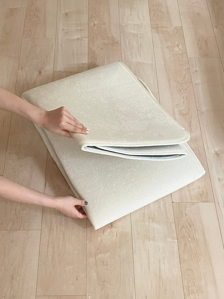 これを解決するために何かできないかな?と思い、リトルムならではの白色にこだわって作った下敷きラグです。