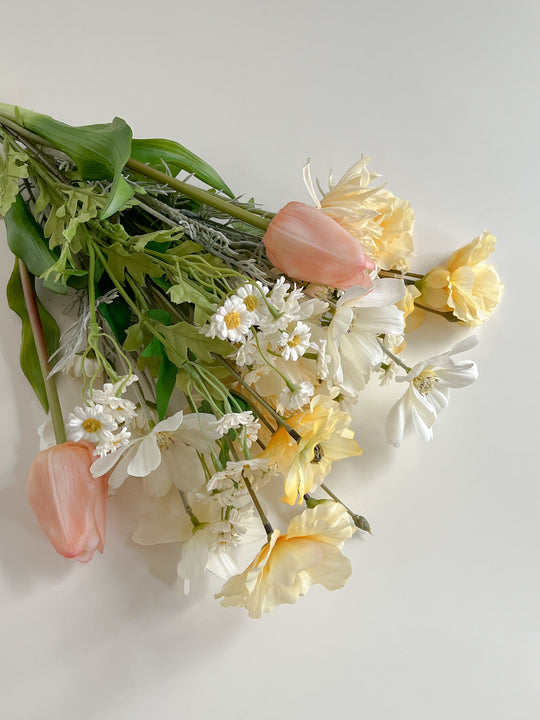 色も形もさまざまな造花をmixした、Little Roomsオリジナルのブーケ。