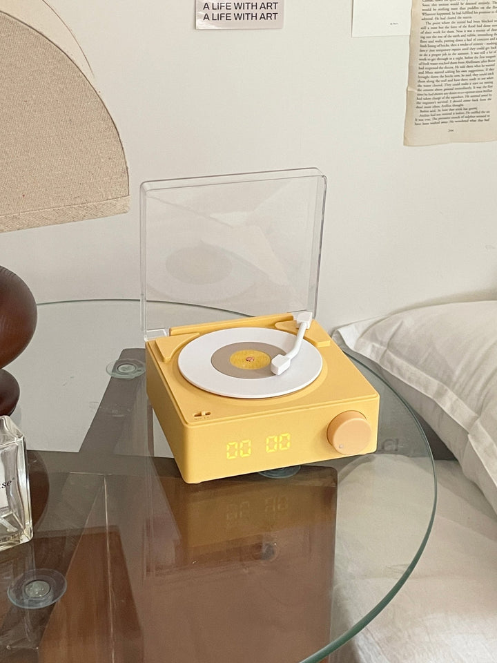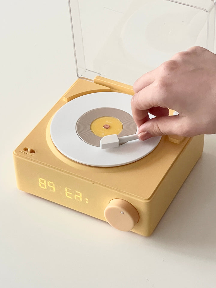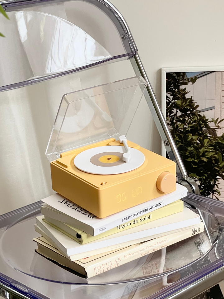 小さなレコードプレイヤーのような見た目がユニークなスピーカー。