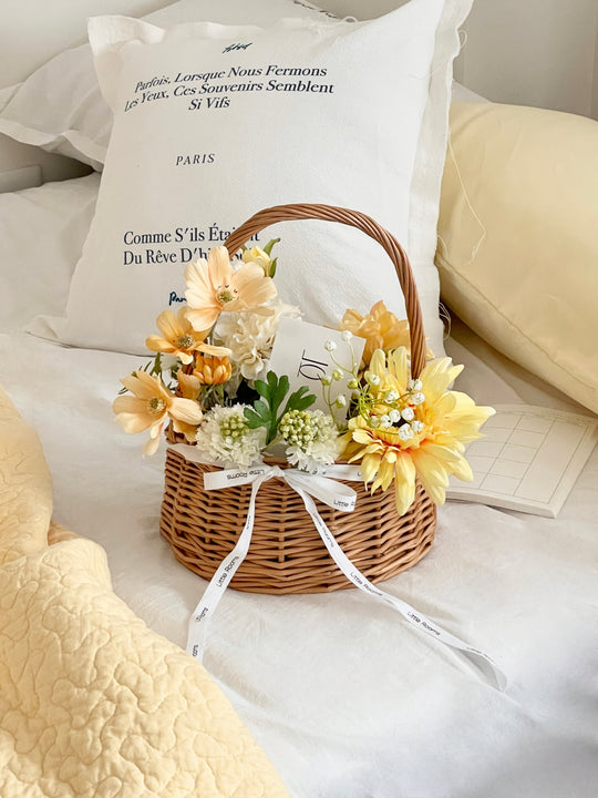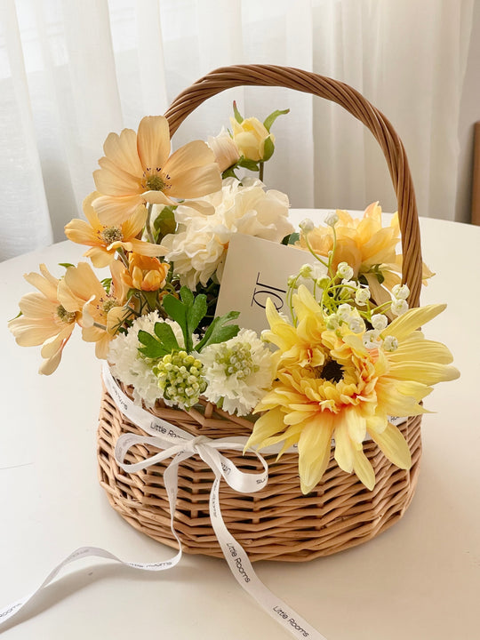 まるで本物みたいな造花を組み合わせてつくった、Little Roomsオリジナルの造花のバスケット。