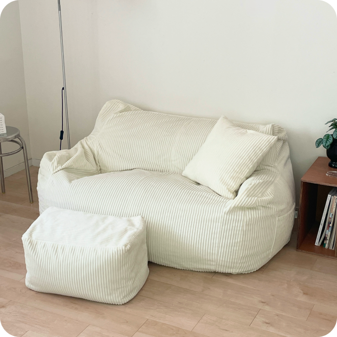・ビーズソファの特性上、使っていくうちに体に馴染んでヘタリが生じてきます。