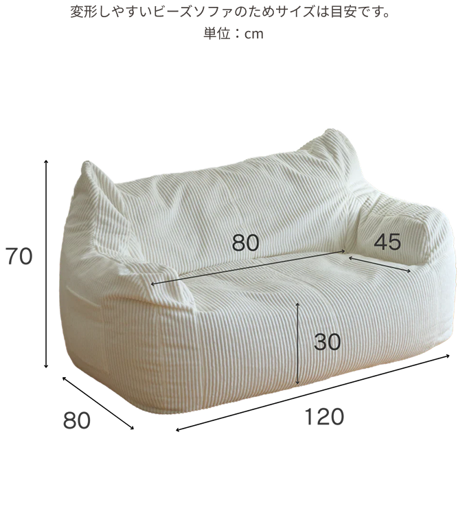 ・ビーズソファの特性上、使っていくうちに体に馴染んでヘタリが生じてきます。 ・サイズは若干誤差がある場合がありますのでご了承ください。