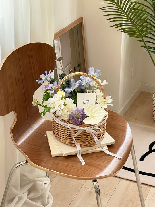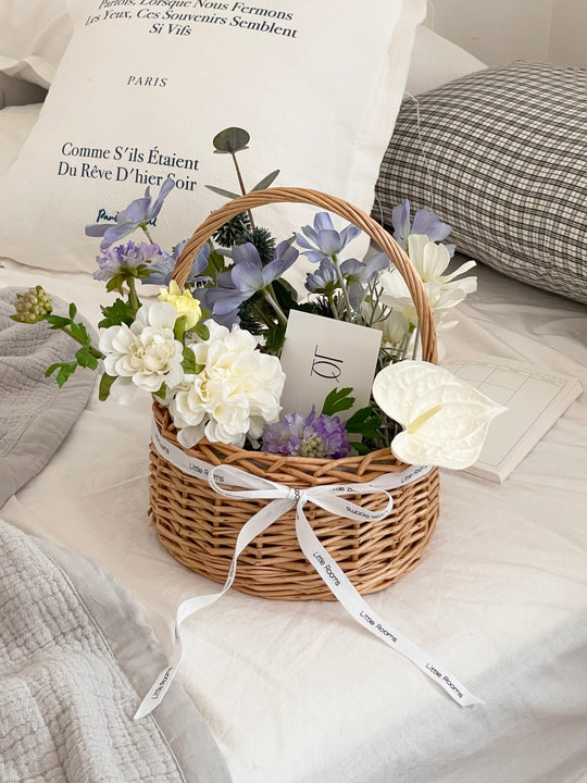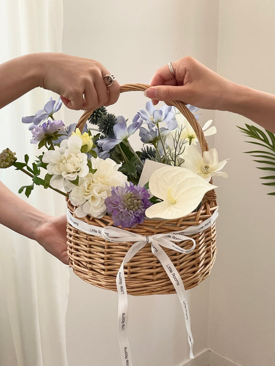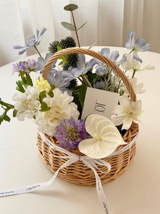 まるで本物みたいな造花を組み合わせてつくった、Little Roomsオリジナルの造花のバスケット。