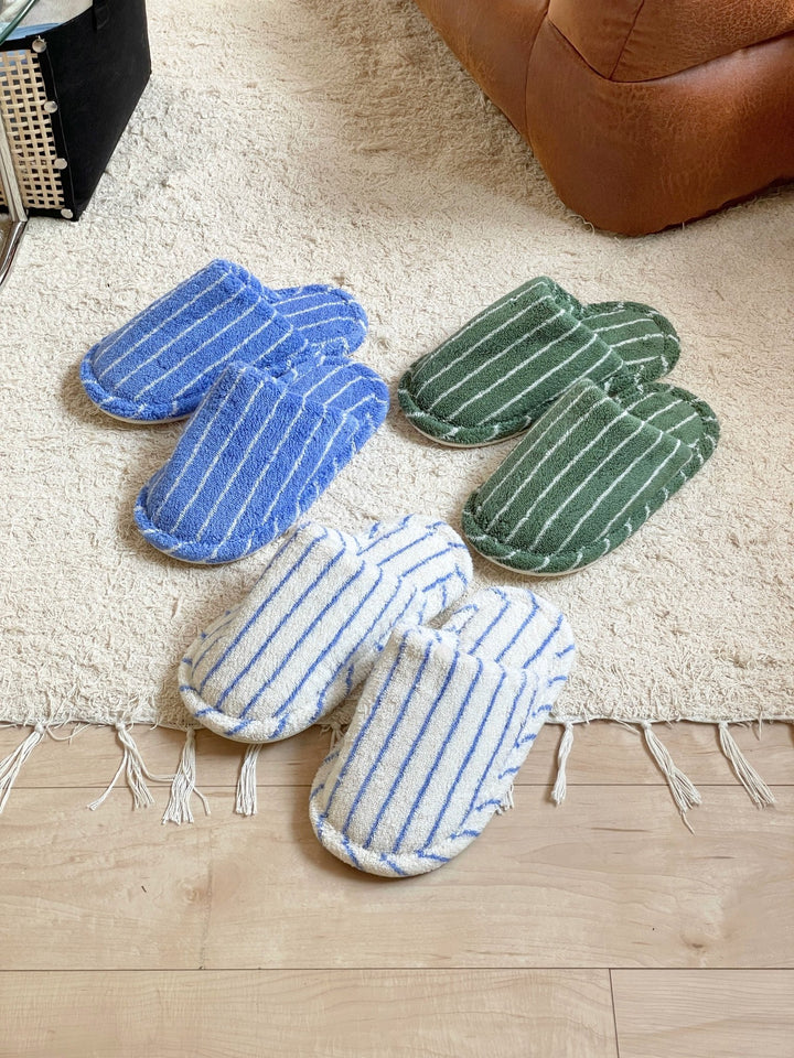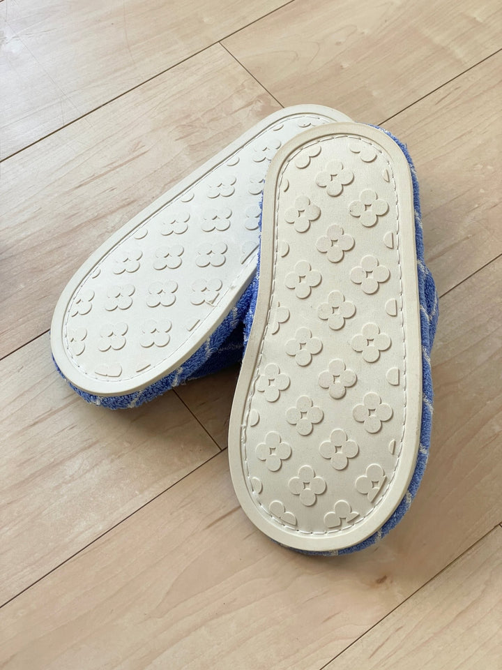 パイル生地のルームシューズなので、お風呂上がりの足でそのまま履いても水分を吸収してくれるのが嬉しいポイント。