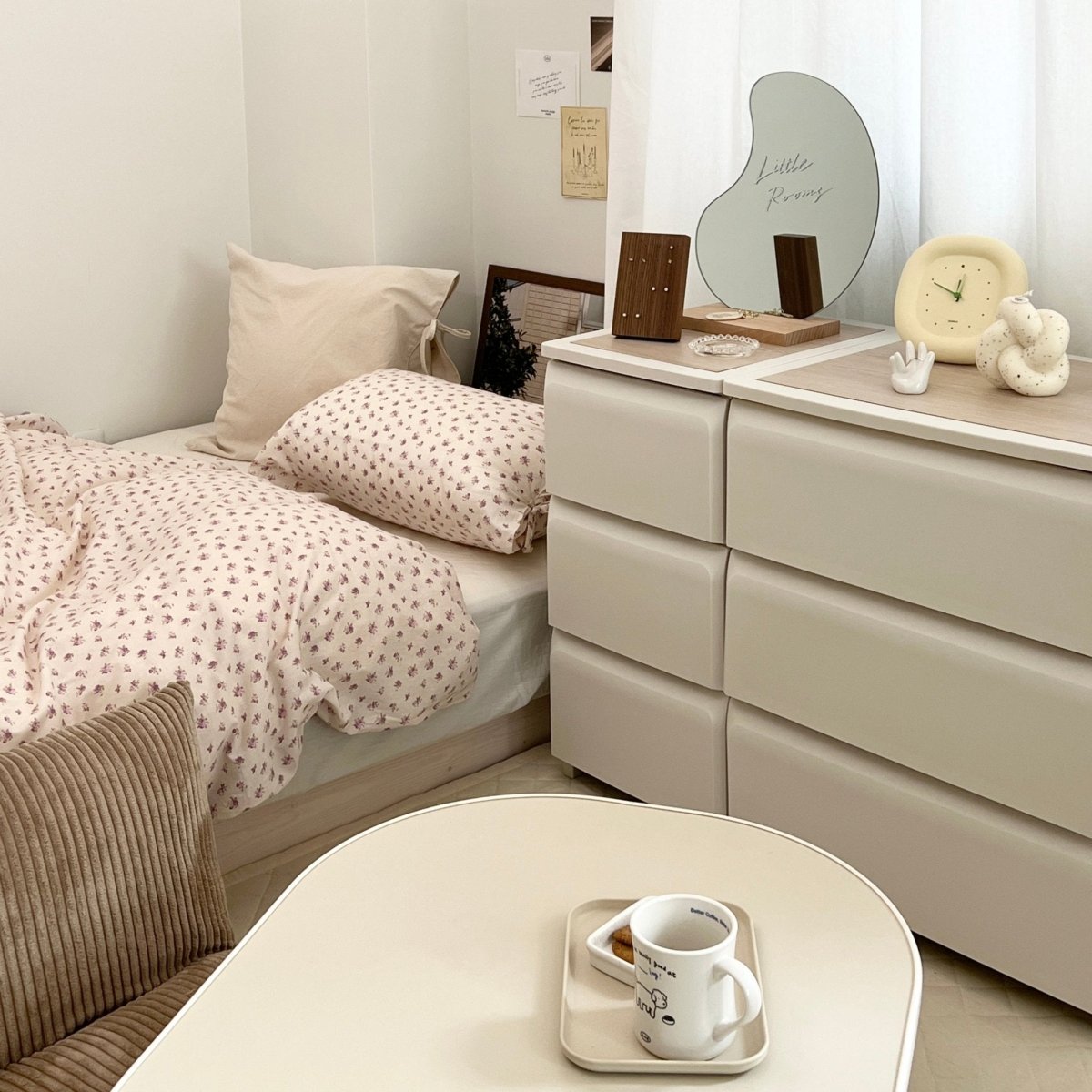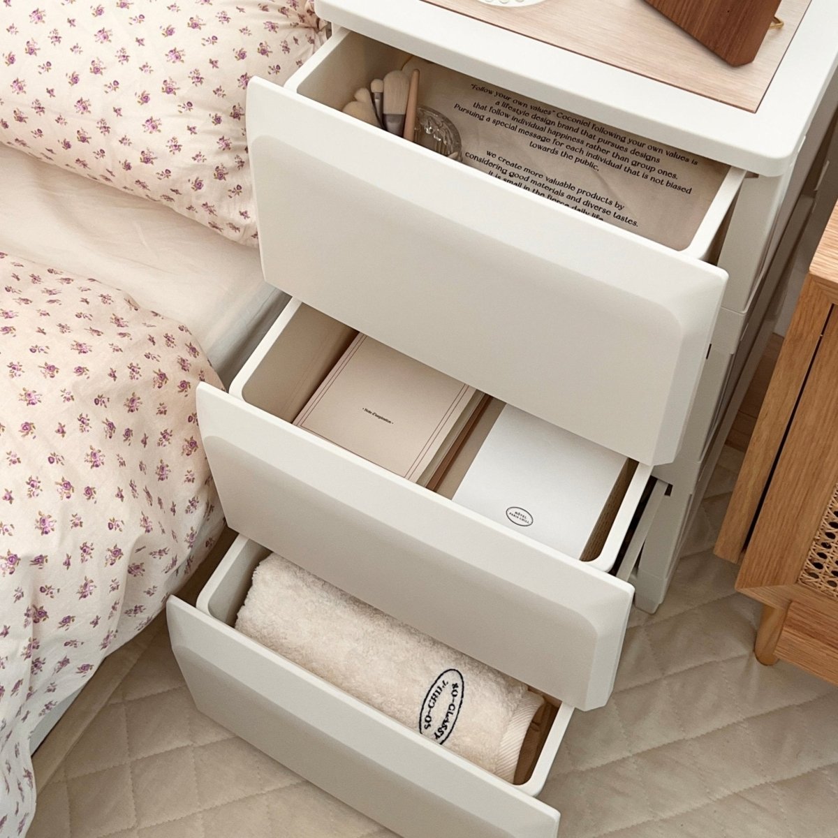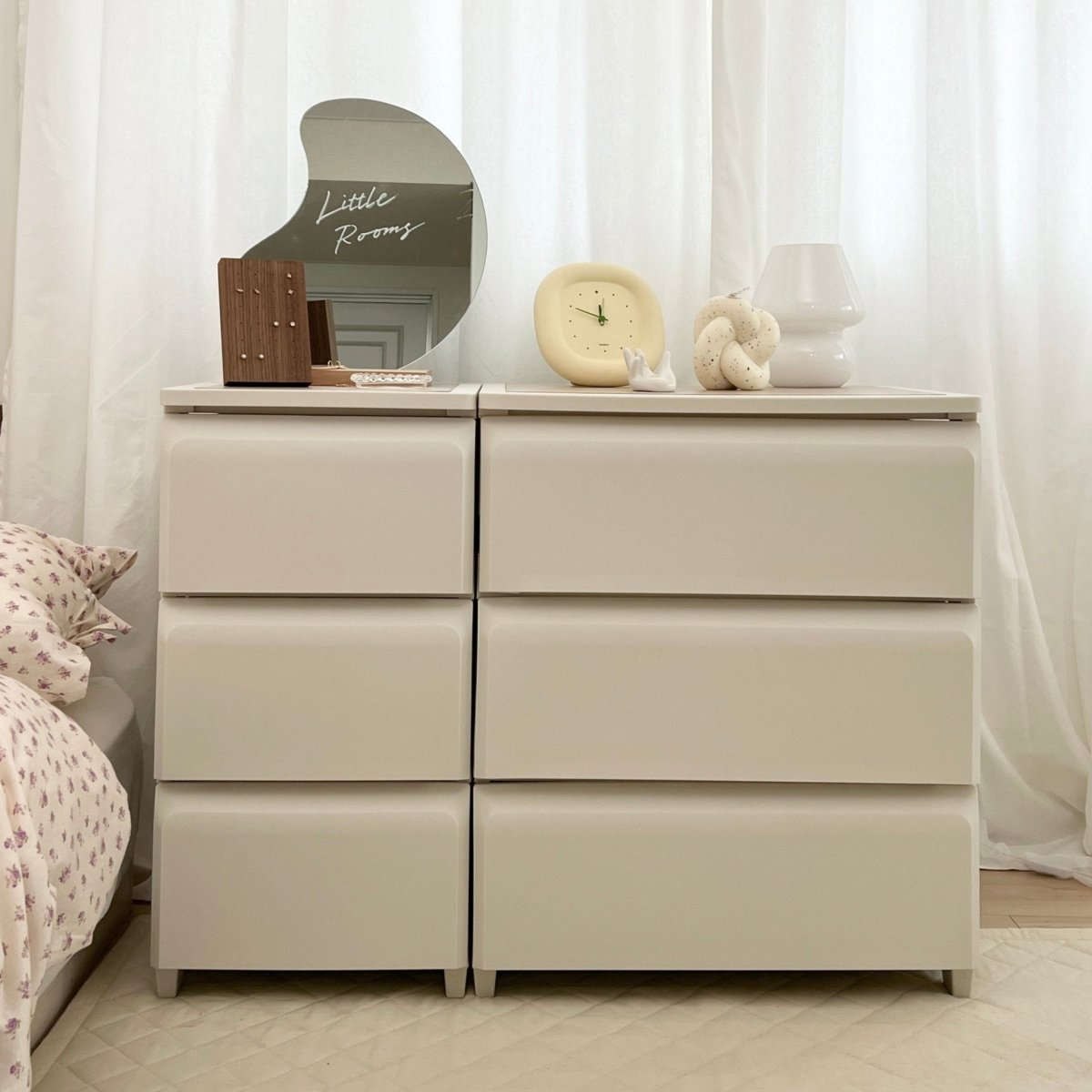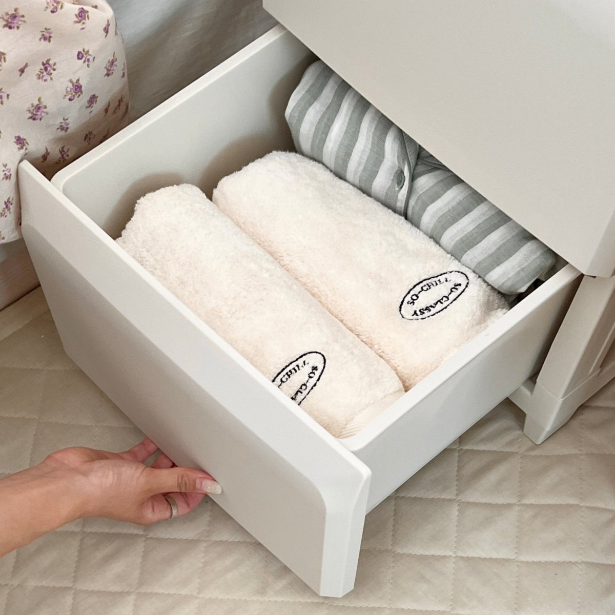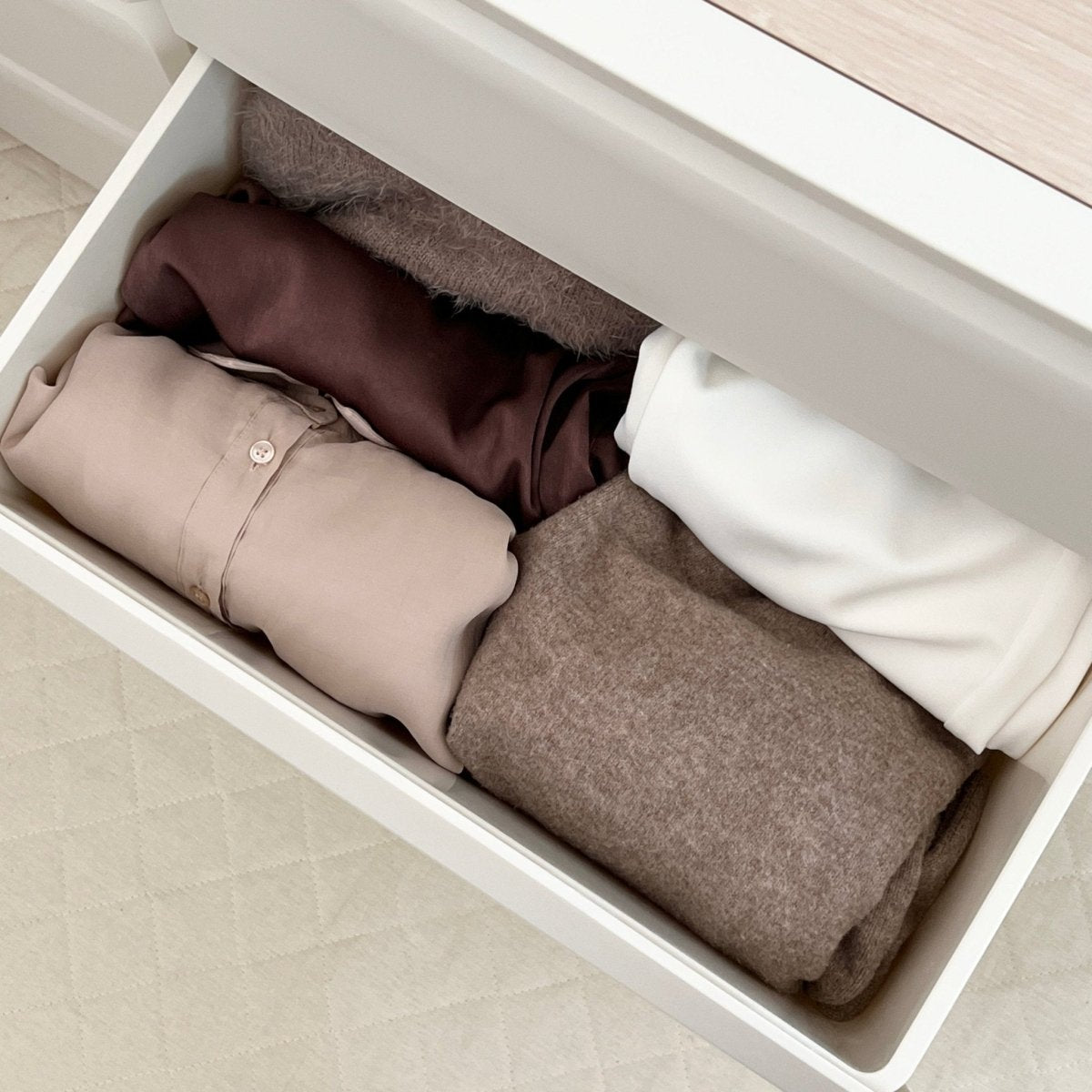 コンパクトなのにたっぷり入る、ミルキーカラーの収納チェスト