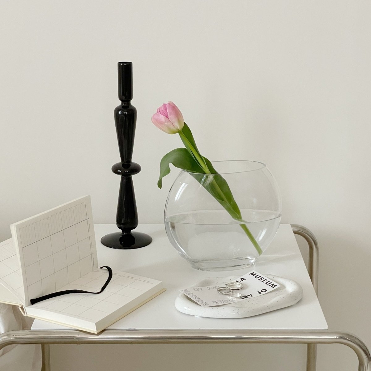 アートギャラリーに置いてあるようなクラシカルな見た目が特徴的。同じモノトーン系のアイテムと並べたり、お花などであえて色を足して合わせたり。シンプルなデザインだからこそ自分ならではの飾り方を楽しんでみてください。