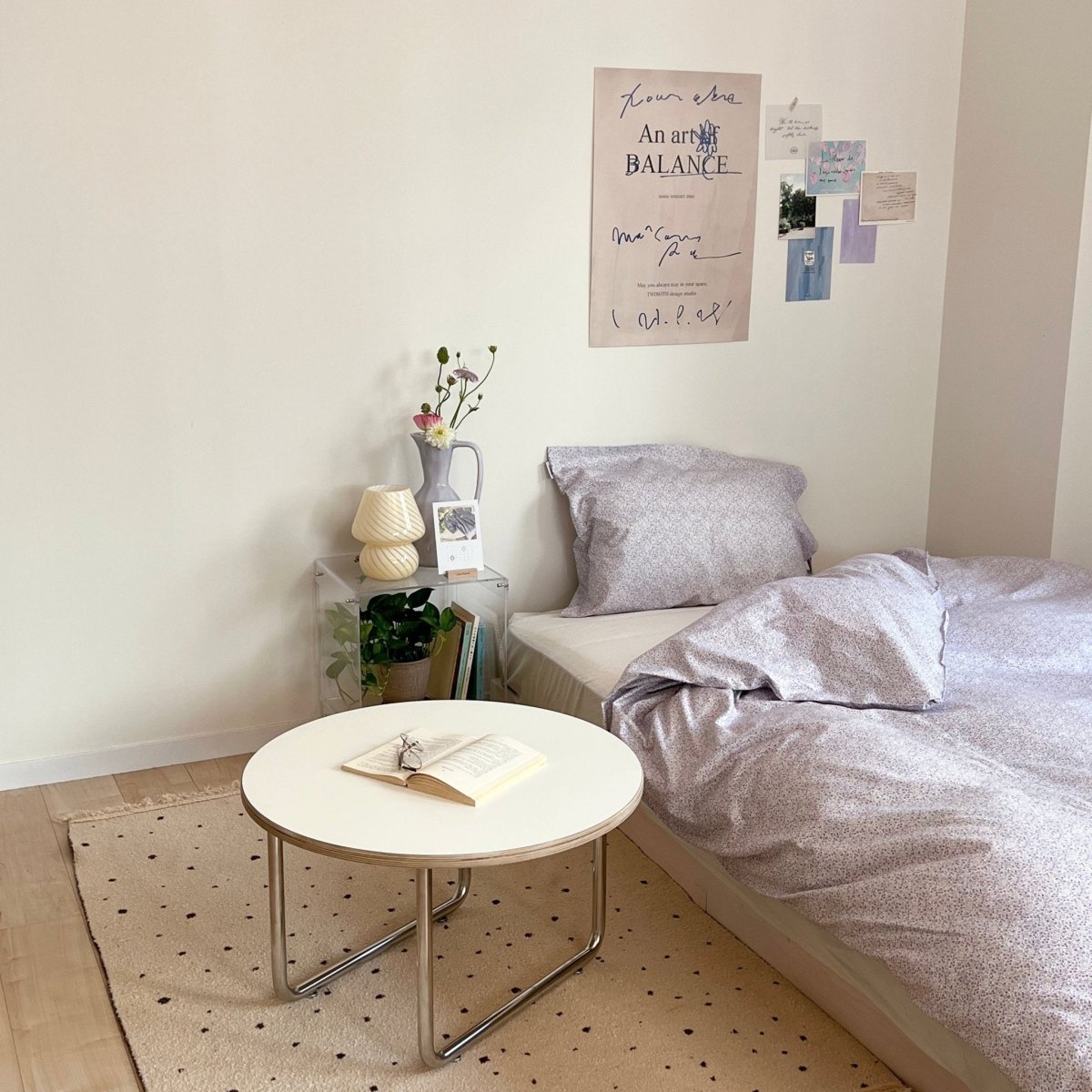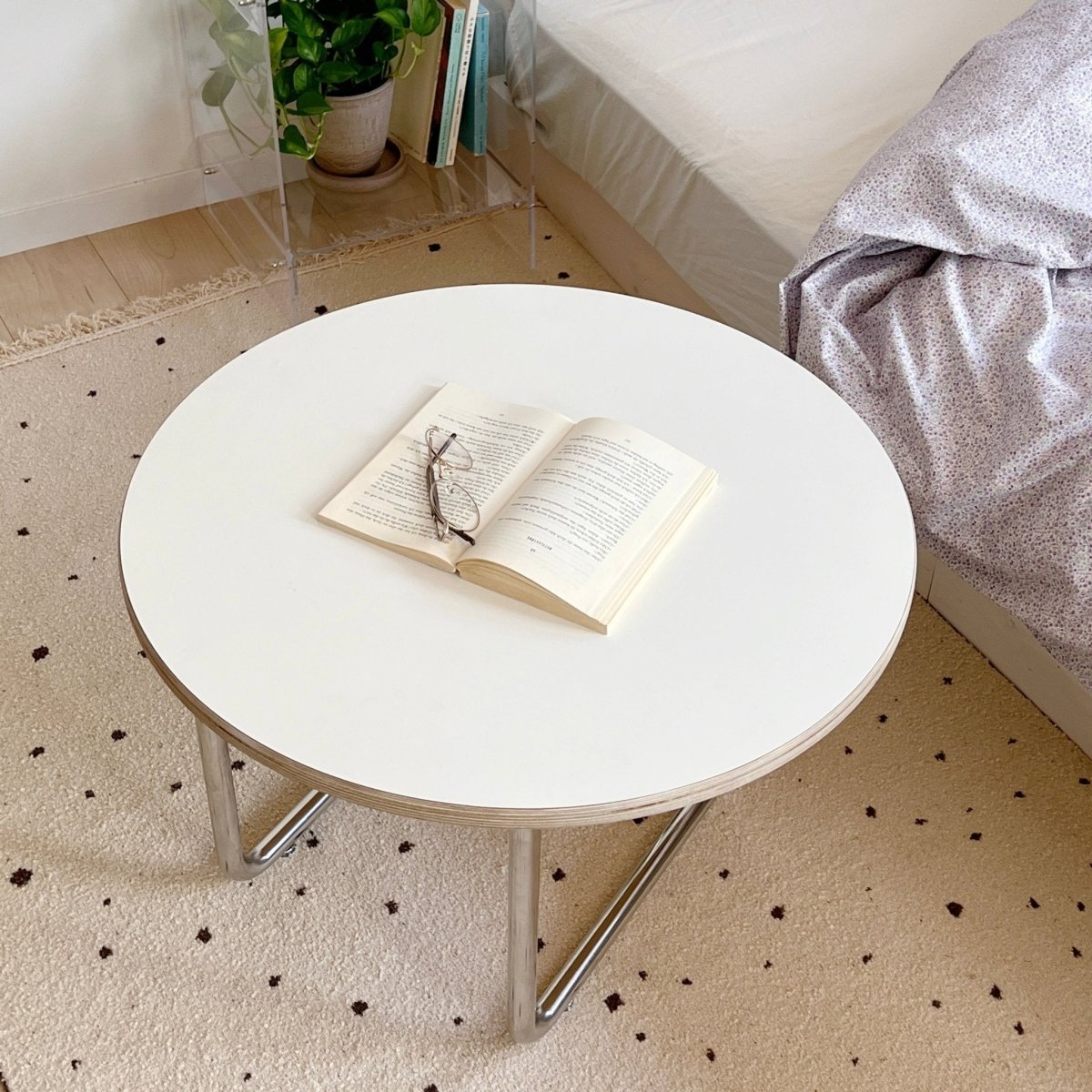 どんなお部屋にも馴染みやすいホワイトのローテーブル。
