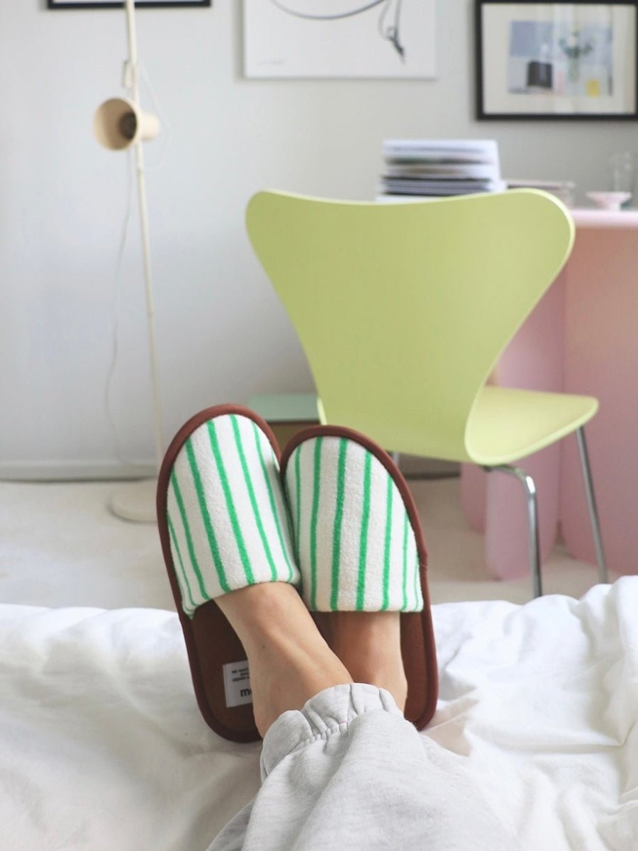 ふわふわの素材で履き心地も抜群。裏にはしっかりと滑り止めがついています。