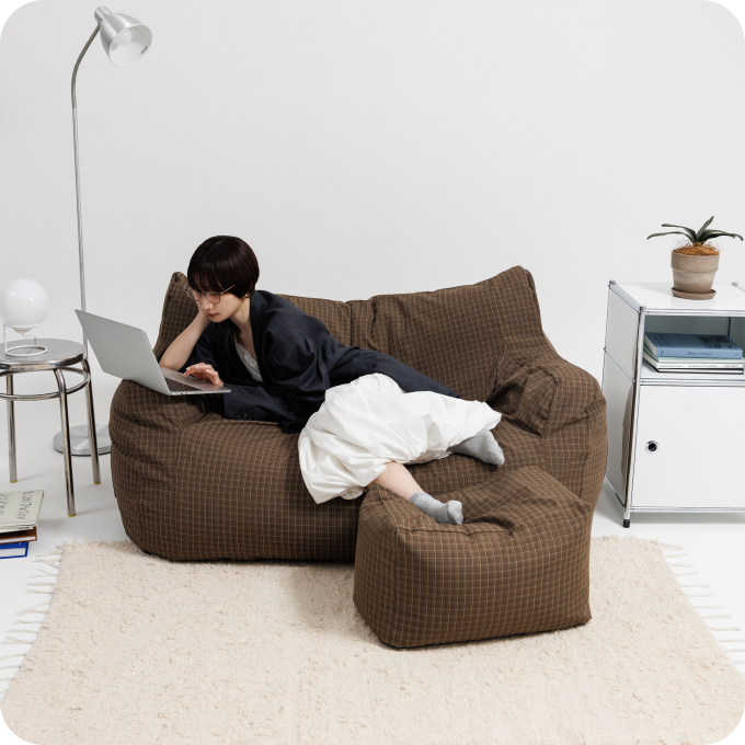ソファとビーズクッションの間のような、硬すぎず柔らかすぎない座り心地。しっかり腰掛けても、ごろんと寝転がっても、快適です。
