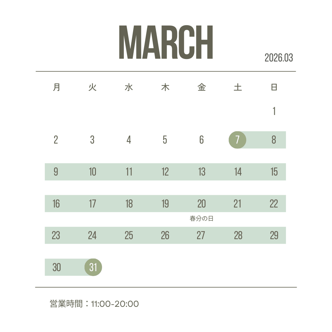 ・日時:3月7日(土)~ 3月31日(火)
